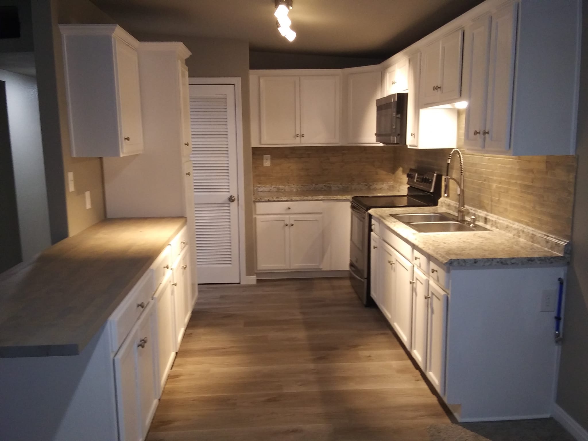 Kitchen flooring updated for more modern look. Cabinets and countertops updated to give kitchen a more luxurious feel.